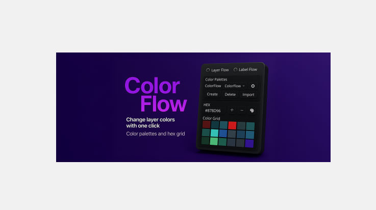 With ColorFlow, you can create custom palettes, quickly apply colors to any layer type, organize labels efficiently, and streamline your workflow with intuitive shortcuts.