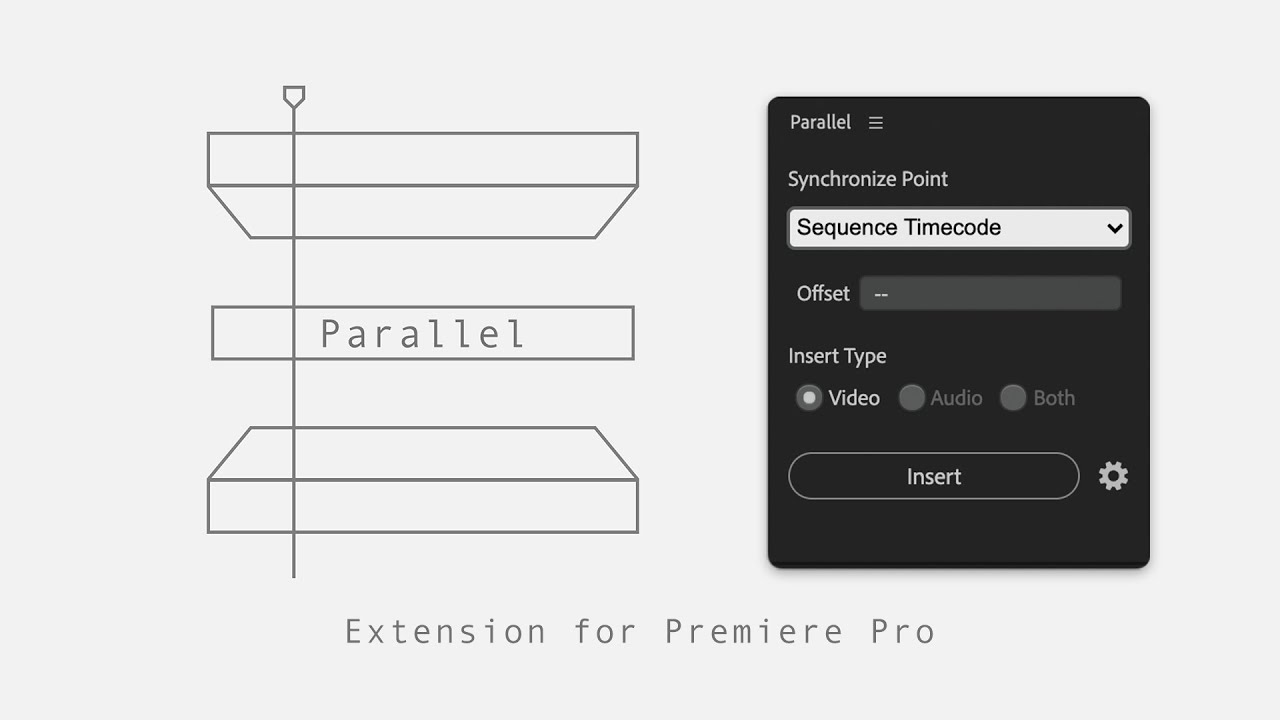 Parallel inserts clips selected in Project Panel into the current sequence by way of five sync points. The location of the track to be inserted has priority over the target track. If there is a clip on the target track where it will be inserted, it will automatically be inserted on the track above it.