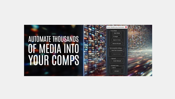 Automate media and text integration into thousands of compositions, create 4K videowalls with a single click, and apply dynamic animations effortlessly with the Smart MediaComp Automator for After Effects.