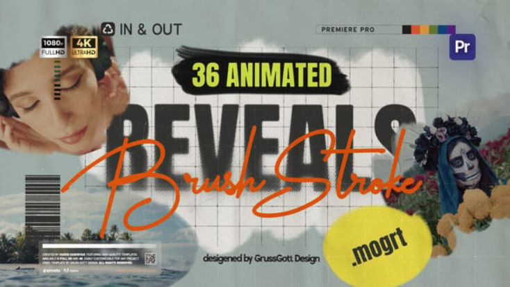 The collection includes both in and out animations for each brush stroke, allowing flexible integration into different types of timelines. All animations are delivered in 4K resolution with authentic hand-painted texture and irregular detailing. Customization is available via the Essential Graphics panel, enabling quick control over timing and integration.