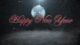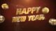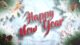 - Happy New Year text and white snowflakes, red balls on dark background