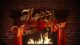 - Fireplace, gifts in the Christmas socks and Happy New Year text on bricks