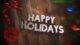 - Happy Holidays text, white snowflakes on red background