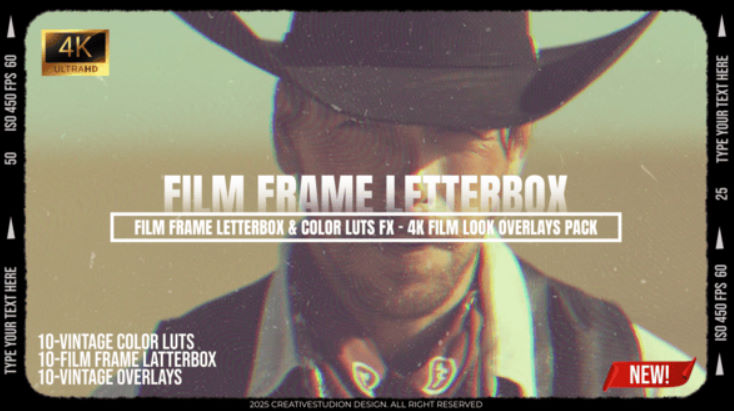 Videohive Film Frame Letterbox & Color LUTs FX 4K Film Look Overlays Pack MOGRT