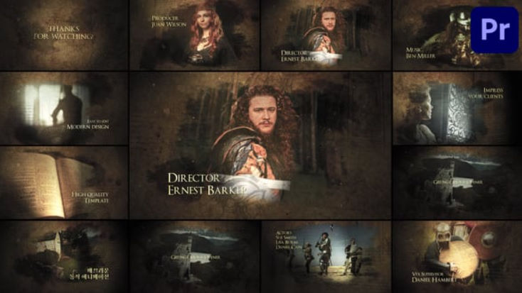 Grunge Movie Opener is a cinematic template featuring 11 vintage-style slides with editable text, media placeholders, and customizable colors.