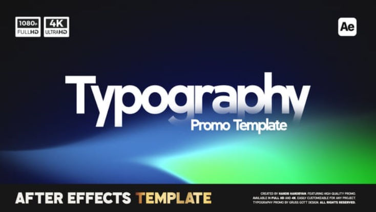 “Typography Promo” is a high-energy After Effects template designed for brand promotions, openers, and advertisements. With bold typography and vibrant pre-rendered gradient backgrounds, this 21-second template provides a visually engaging way to promote products or services. Easily customizable, it offers flexibility for a variety of creative projects.